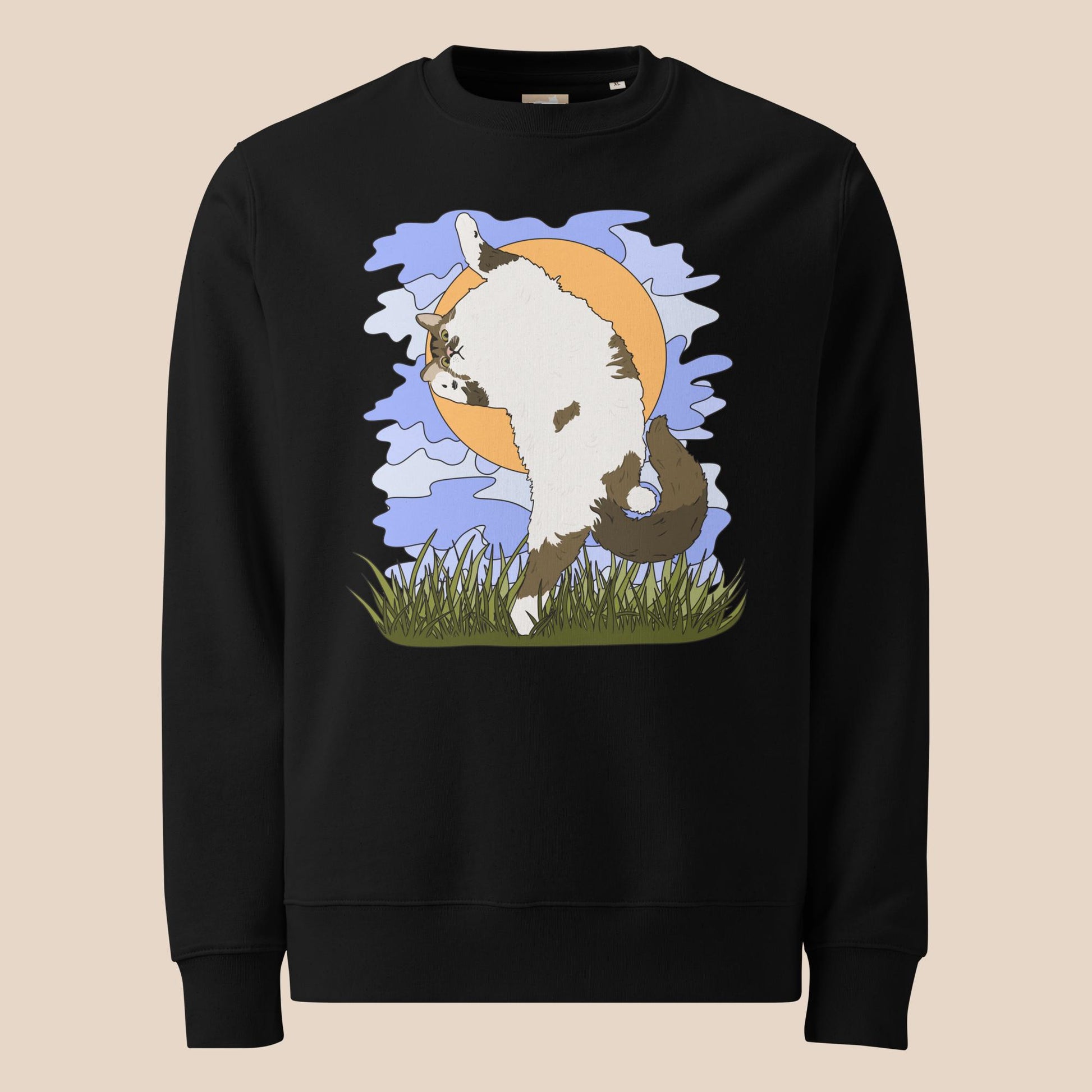The classic fit and smooth brushed fleece make it ideal for layering or wearing on its own — a soft, weighty essential for cooler days. Inspired by our cat Finn’s curious spirit and our love for nature, this design is part of our commitment to slow fashion and thoughtful design.